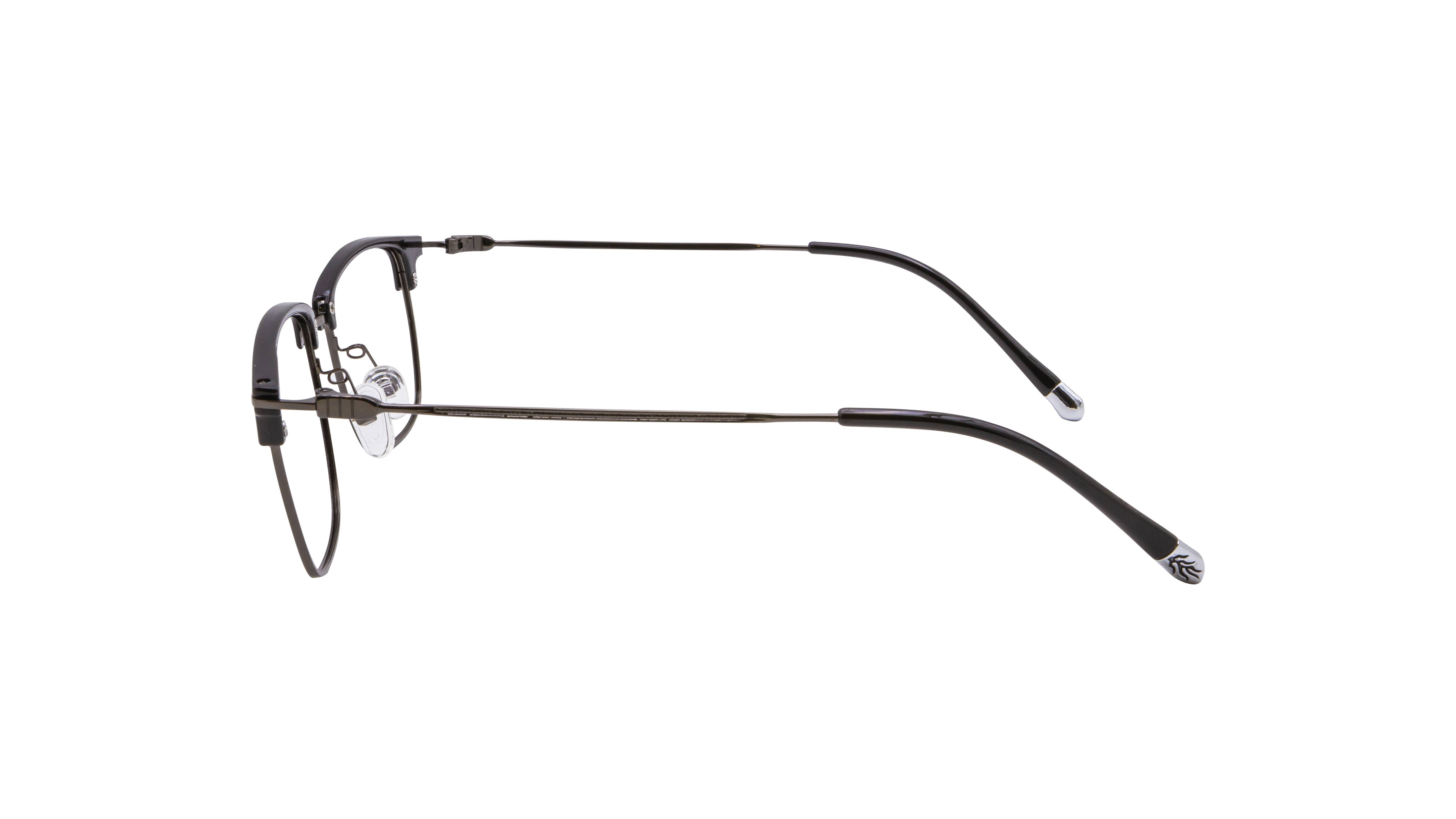 Featuring tall square-ish lenses, this brow-line frame comes with adjustable nose-pads and a beautiful black/gun-metal finish.