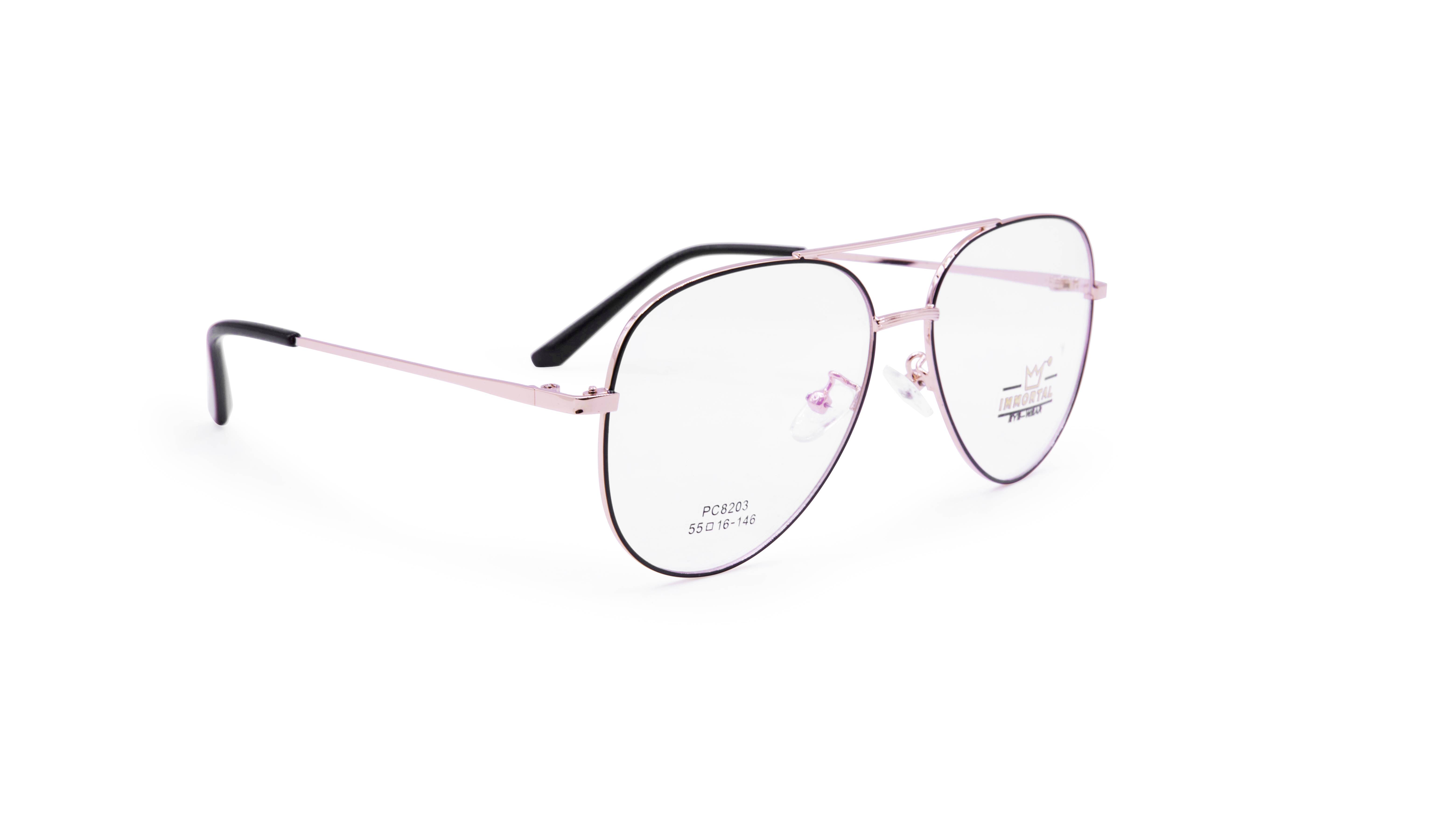Immortal eyeglasses in a classic aviator style. This sharp frame comes in a gorgeous metal finish with exaggerated oval-shaped lenses.