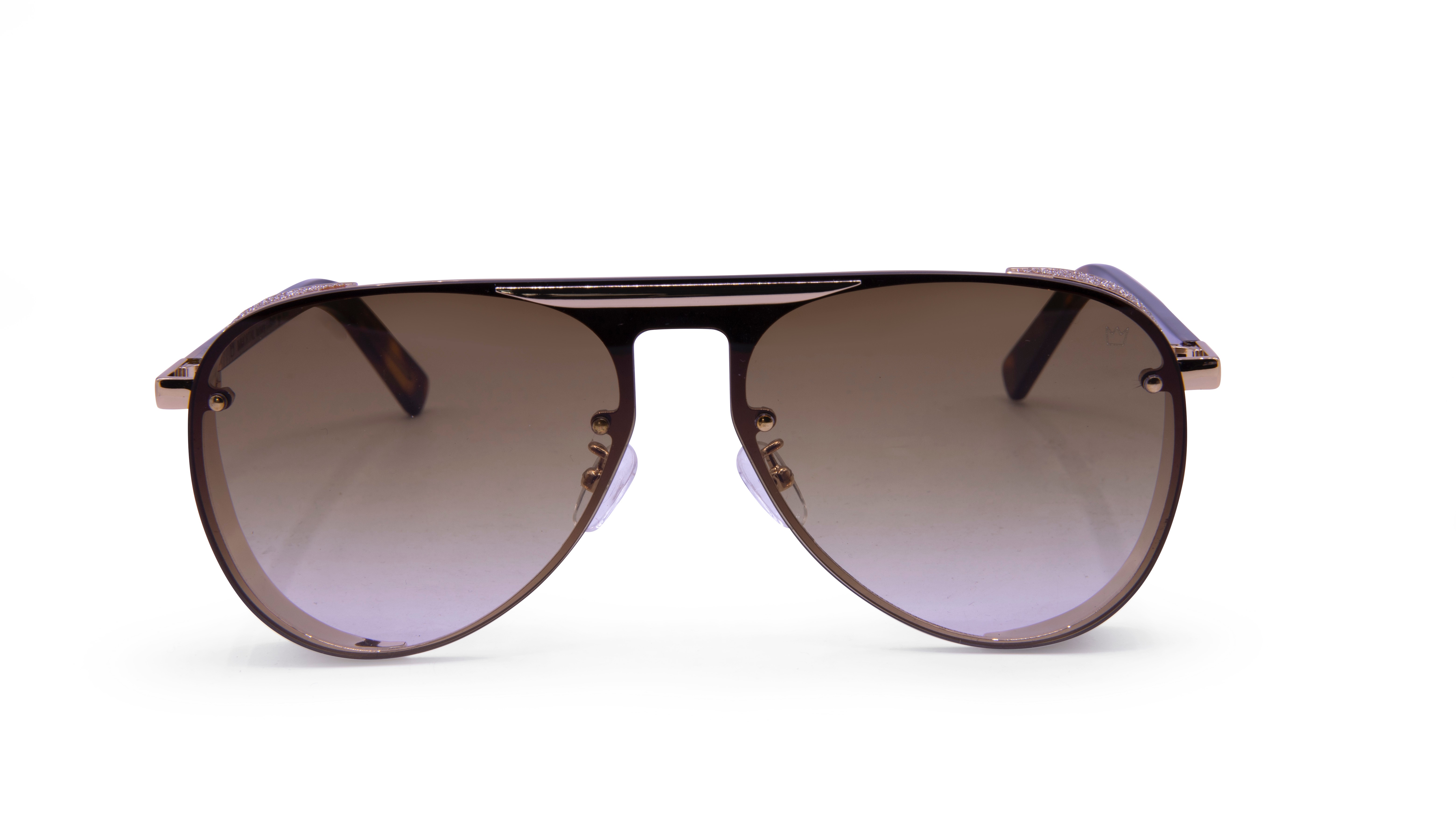 Minimalist spirit converges with maximalist details in the elegant form of these perfect aviators. Our additions to a classic aviator which includes an accented brow-bar and glitter-edged temples, this design embodies our timeless commitment to design innovation and luxurious materials.