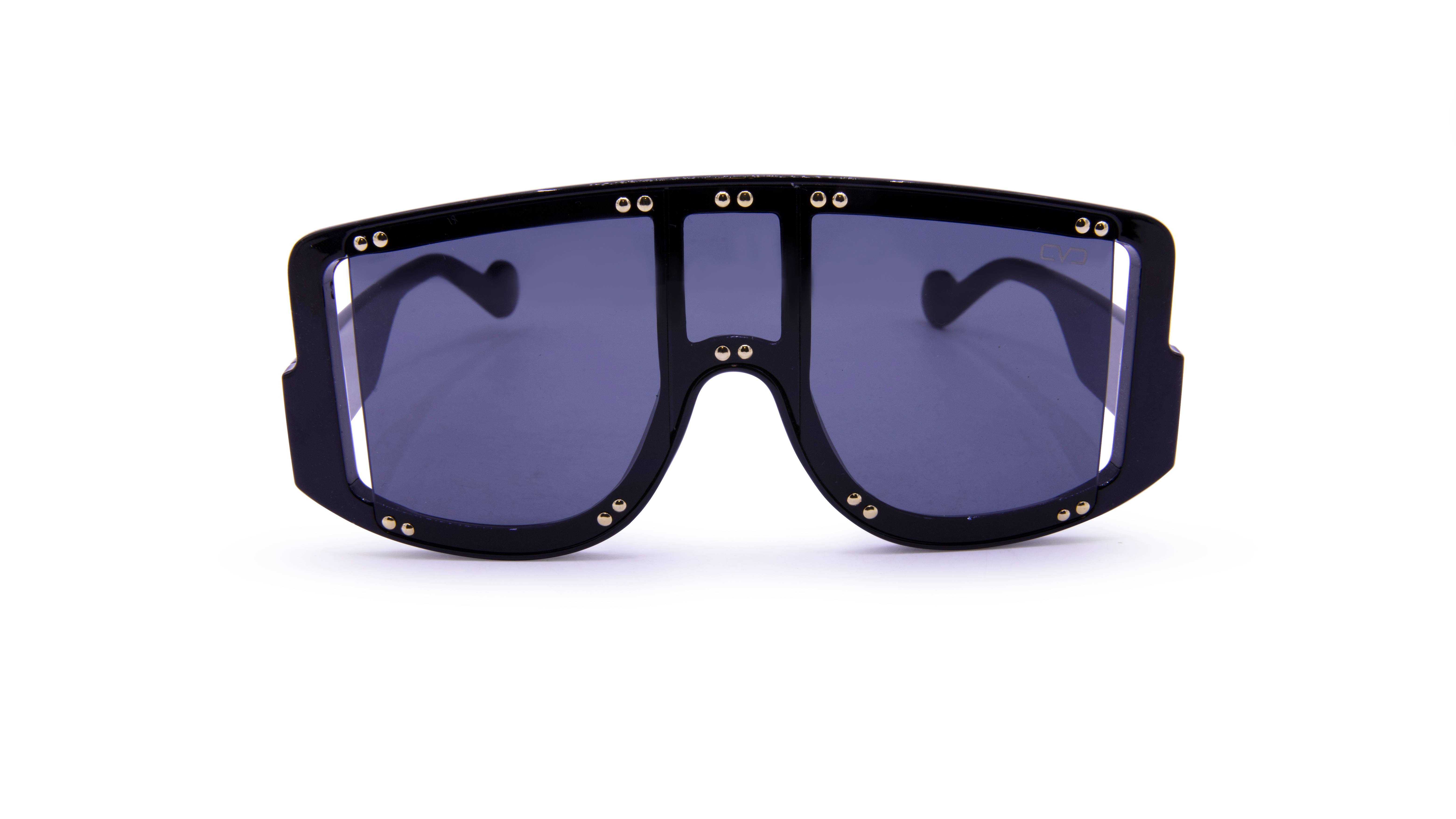 These oversized flat-lens shield sunnies are stunning and we cant get enough of them. Gold-studded accents truly make these a SPOTLIGHT worthy piece.